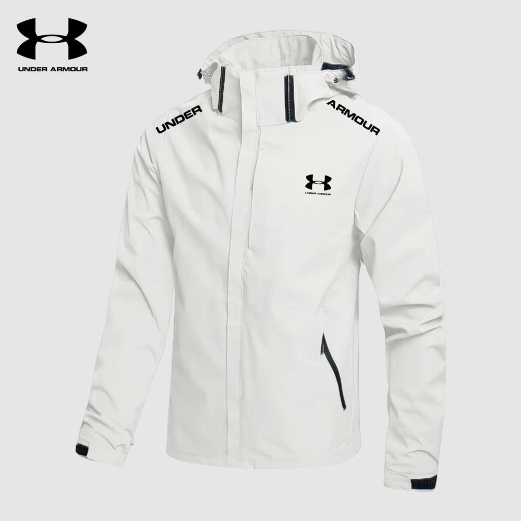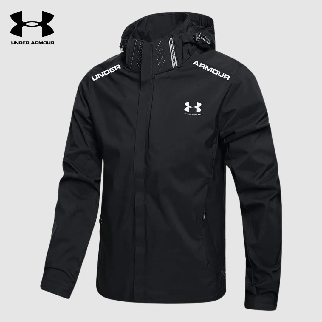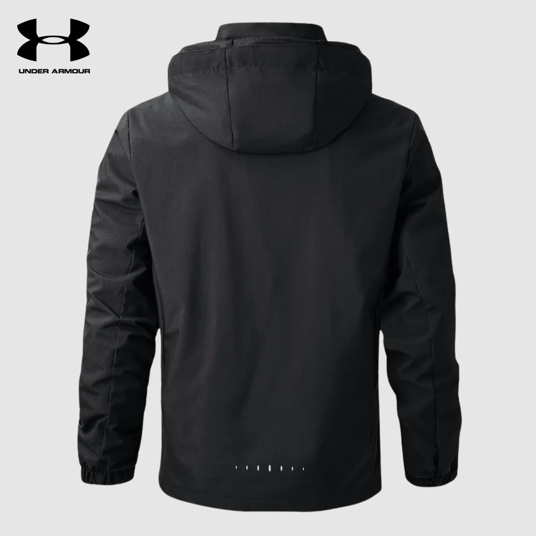 Realizzata in un materiale leggero e traspirante che offre grande libertà di movimento. Il cappuccio e la chiusura lampo proteggono dal vento e dalla pioggia leggera.